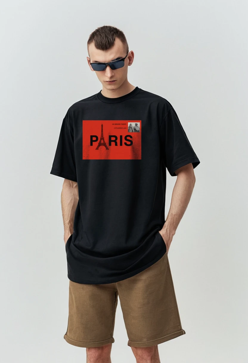 Make a bold statement with this black streetwear t-shirt featuring a striking red Paris graphic and Eiffel Tower artwork. Perfect for urban fashion lovers, it blends art, attitude, and global culture in one premium tee.